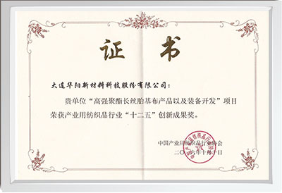 大连pa视讯新材料科技股份有限公司(简称pa视讯新材)成立于2011年,专业从事聚酯等高分子聚合物纺粘法非织造材料的新工艺、新产品以及成套技术与装备的研发与产业化推广,以“交钥匙工程”方式提供定制化的整体工程解决方案,为客户提供技术咨询、产品及装备设计、工厂设计、成套技术装备制造和集成、安装调试及后续技术支持等总体化、系统化工程服务,专注于PET、R-PET、PLA等纺粘热轧、针刺、热风固接工艺以及双组份粗旦长丝非织造材料的开发、生产与销售。
